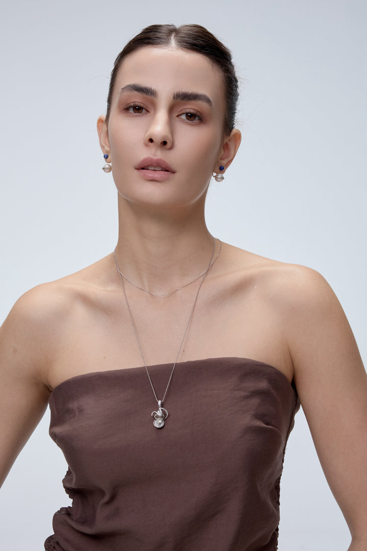 Orphic Egg Charm 吊墜,以銀蛋象徵宇宙起源,靈蛇纏繞其外,守護你的內在力量。銀蛋內藏代表專屬星座能量的天然寶石,喚醒內在宇宙,慶祝屬於你的誕生與蛻變。