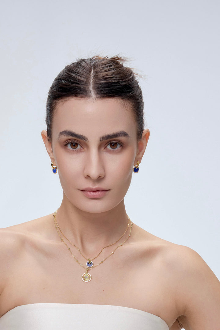 星星耳環以流星般的流線造型為靈感,垂墜曲線設計優雅修飾臉型,並搭配可替換水晶,依據每日情緒或造型自由切換。