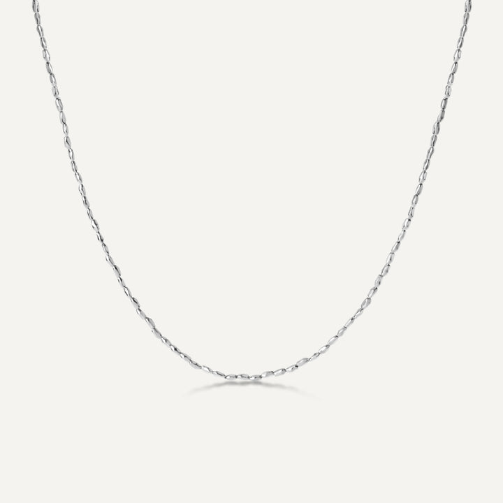 The wishful silver necklace, designed with prosperity in mind, features uniquely shaped, substantial beans that symbolize wealth. It can be elegantly paired with any pendant or worn on its own for a high-end look full of sophistication.