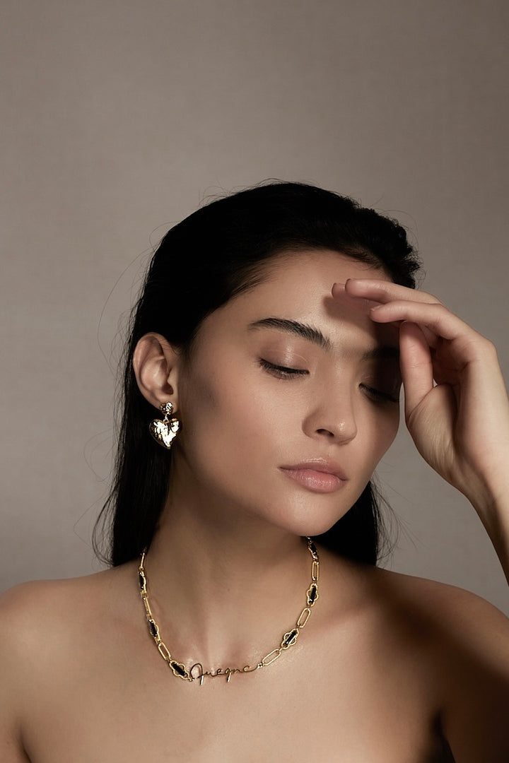 Amor 愛心磨砂抓皺金箔耳環