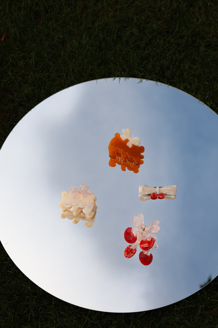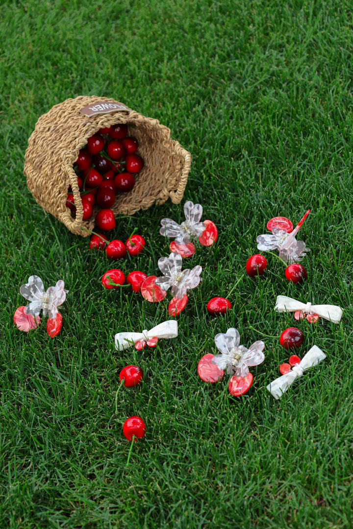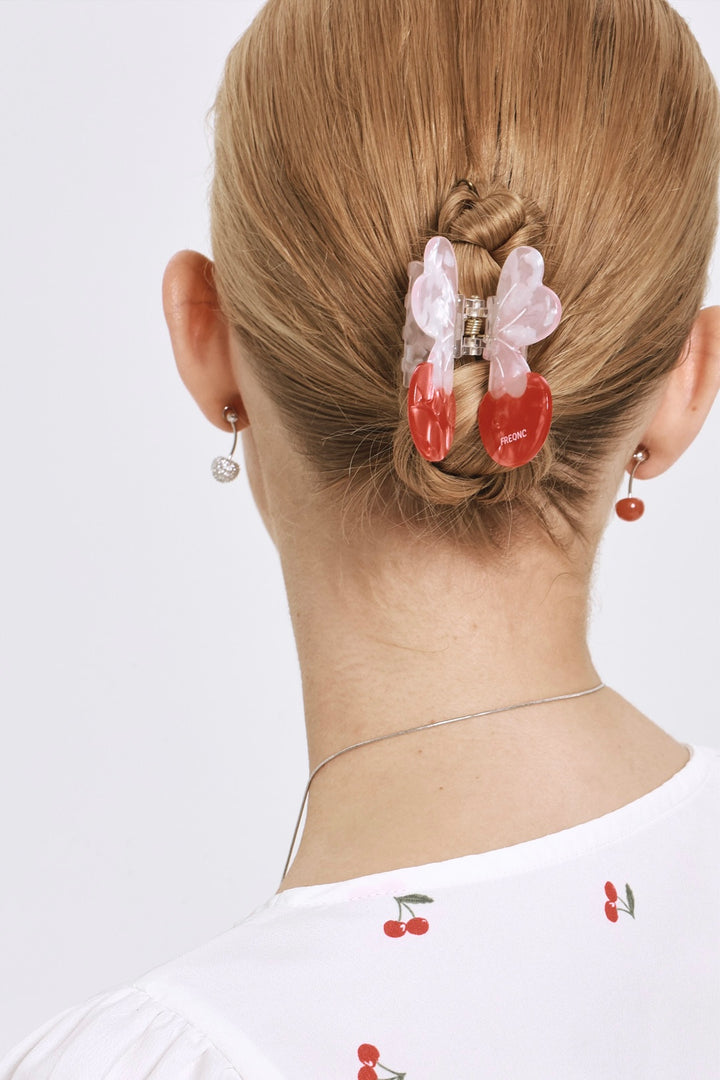 櫻桃與蝴蝶結結合的抓夾,採用融色技術,使用高質感醋酸纖維。